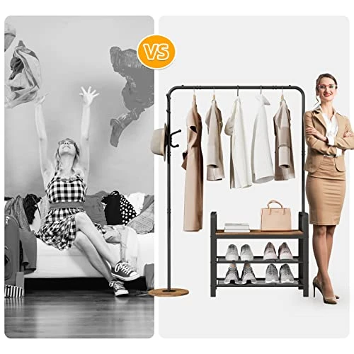 - Clothing Racks for Hanging Clothes: This coat rack with clothes hanging rods, It offers extra space, so you can feel free to invite more clothes in, great for hanging suits, coats, pants, shirts or other heavy clothes. Closet bursting at the seams but still want the latest popular dress? This garment rack comes to help.