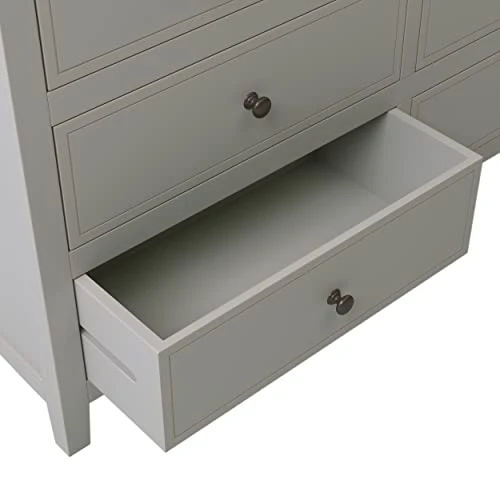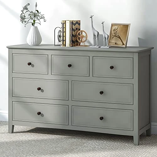- 【Fully-assembled 7-Drawer Dresser】The gray 7-Drawer Double Chest is a universal nursery and bedroom storage solution featuring stylish metal knobs for added modern flair. Crafted with pine wood, this durable double dresser features 7 spacious drawers, durable steel hardware, metal-glide drawers with safety stops. Overall Dimension: 48.42”L x 15.35”W x 30.11”H.