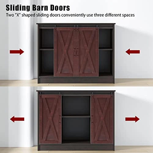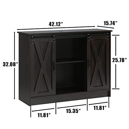 - MULTIFUNCTIONAL STORAGE CABINET for kitchen with sliding barn doors is a very good design and make it easier to fetch your items. Perfect combination of hidden storage and display, you can also display your collection. Let you have a farmhouse buffet cabinet in your kitchen and dining room. More uses such as coffee bar cabinet, cupboard cabinet, server buffet table, wine cabinet, and so on.