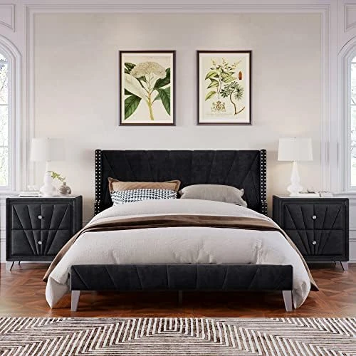 - [2 Nightstands & Chest] Also come with 2 nightstands and 1 chest. As a functional piece of furniture, these products can be used alone and can be placed in bedrooms, living rooms and guest rooms to meet the storage needs of daily life. For Bedroom Sets, this combination looks more elegant and more powerful.
