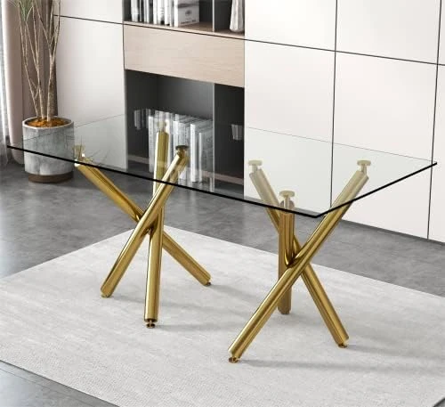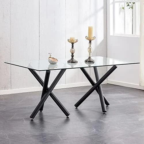 - 【Easy Installation】Our glass dining table is very easy to put legs on. This chair can assemble within 15 minutes with a simple screw-on. All parts are given in the package, and you can assemble the table and chair set easily by following the detailed instruction. Table Dimension:35.4” D x 63” W x 29.9” H.