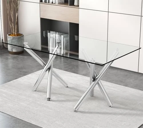 - 【High-Quality】 0.39” thickness Tempered Glass tabletop is very sturdy. The 4 chrome metal legs design steel frame makes this set built to remain sturdy for long-lasting use. Easy to wipe clean with a damp cloth. And weighing capacity of up to 500lbs