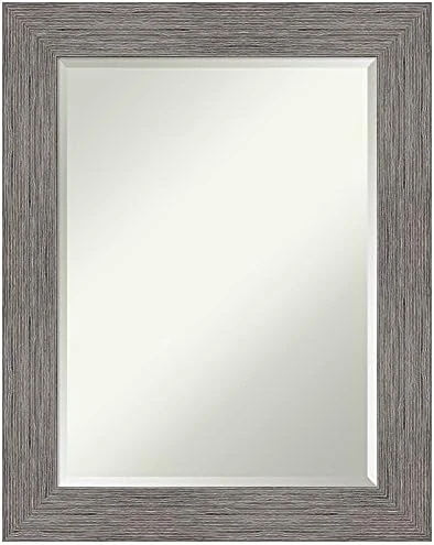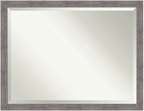 - QUALITY MATERIALS: You can’t mistake the quality of handmade mirrors for your wall decor. The Alta Brown Grey frame is a grey brown washed frame with the look of woodgrain that scoops in to a brushed, shiny metallic silver inner edge. The frame measures 2.5 x 1 inches. All Amanti Art wall mirrors are finished with a paper backing to prevent moisture and dust buildup.