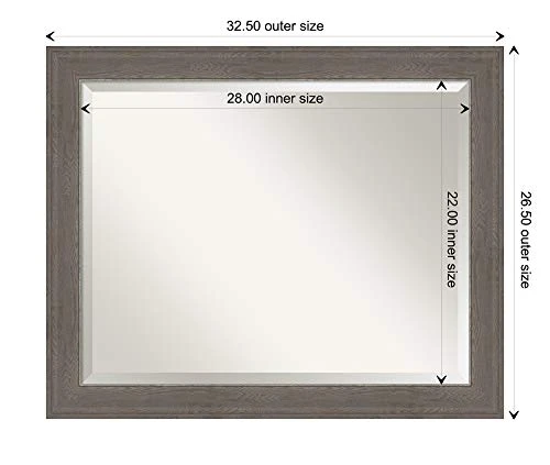 - DIMENSIONS: The overall size of this wall mirror measures 32.50 x 26.50 inches, including the frame. Its reflective area measures 28 x 22 inches and has a 1-inch bevel. The mirror works perfectly as a bedroom mirror, office mirror, entryway mirror, vanity mirror, or bathroom mirror.