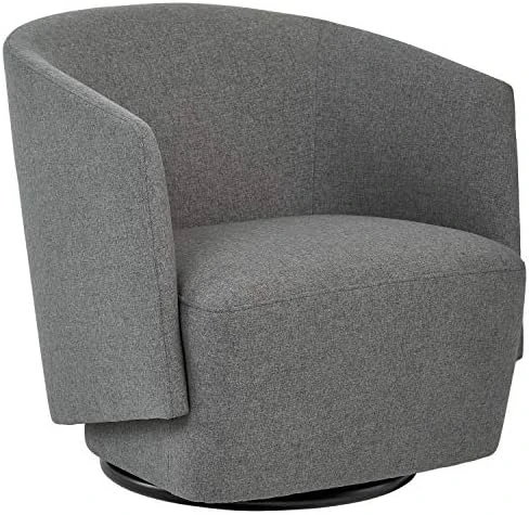 - Solid-wood frame with swivel mechanism. Fabric upholstery over foam cushioning.