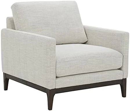 - Solid wood frame; wood plinth with tapered wood legs; 85% polyester, 15% acrylic upholstery