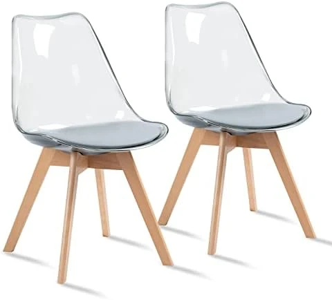 - EASY TO ASSEMBLE: The acrylic dining chair set includes a detailed instruction manual and all screws needed. Assembly is a simple process, which is screwing the wood legs base onto the seat, which most people can do in 5-10 minutes.