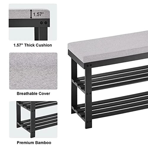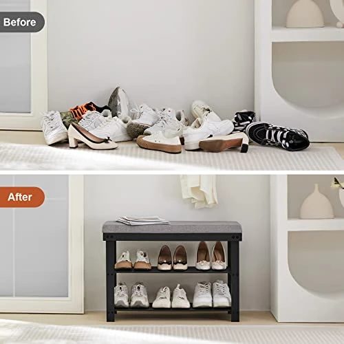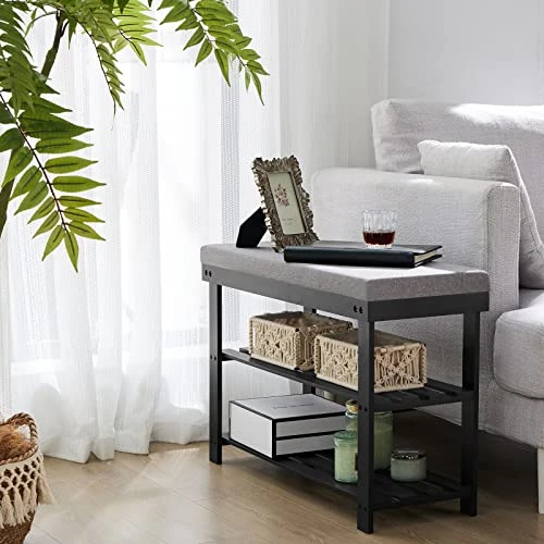 - 【SHOE BENCH AND STORAGE】3 tiers shelves with a distance of 6.7” between them accommodate up to 6 pairs of shoes, which is perfect for your shoes, books, plants,toys or other stuffs.