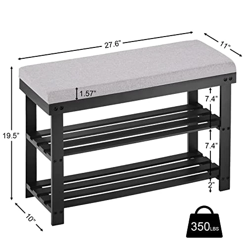 - 【MULTI-FUNCTIONA BENCH】The total size is 27.6″ long x 11″ deep x 19.5″ tall.The shoe bench is versatile to use in your entryway, bedroom, living room, bathroom, garage, hallway or small space.
