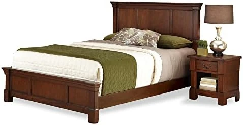 - Mahogany solids and cherry veneers are warmed with a rustic cherry finish