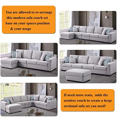 - Modular Sectional Sofa with 6 Packages included left armrest love seat couch, corner couch ; armless couch ; right armrest loveseat couch; ottoman couch & hardware parcel; Modular sofa design fit through your doorway for the basement/ Apartment without any troubles. It will arriving one after the other at short intervals