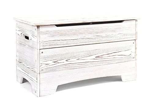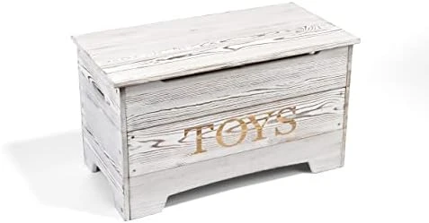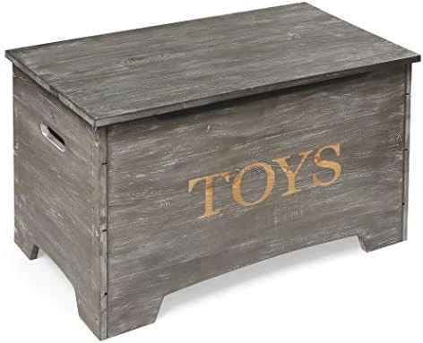 - SOLID CONSTRUCTION: The sturdy toy box is made of carbonized solid wood with an aged and distressed finish. Wipe clean as needed with a damp cloth and dry thoroughly