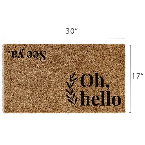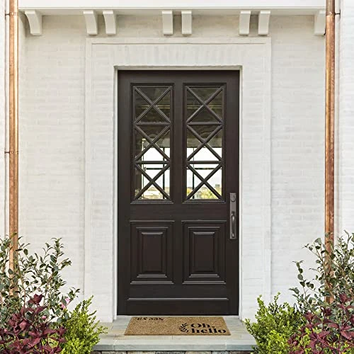 - Dimensions – Durable front door mat, indoor entrance rug, or outdoor entrance doormat. Outdoor mat for home entrance may shed slightly, but much less than doormats made out of coconut coir fibers. Material: Polyester Color: Brown/Black. Dimensions: 30″ x 0.5” x 17”. Please note: Color may fade over time if exposed to extreme heat & direct sunlight.