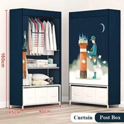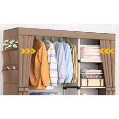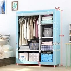 N/A Oxford Cloth Wardrobe Double Layer Cabinet Steel Frame Assembly Cabinet Closet Economy Wardrobe