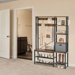 - Hooks are included for hanging bags and coats.