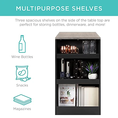 - DURABLE CONSTRUCTION: Water-resistant set includes an engineered wood table top and set of shelves, with a solid metal chair and table frame for years of reliable use