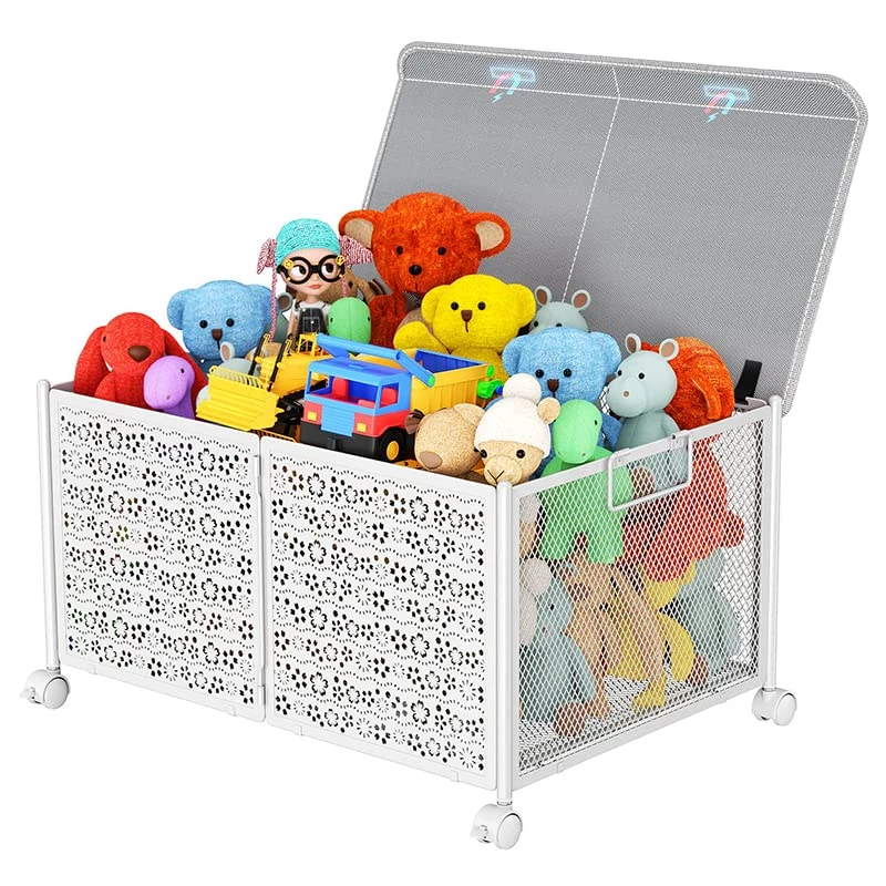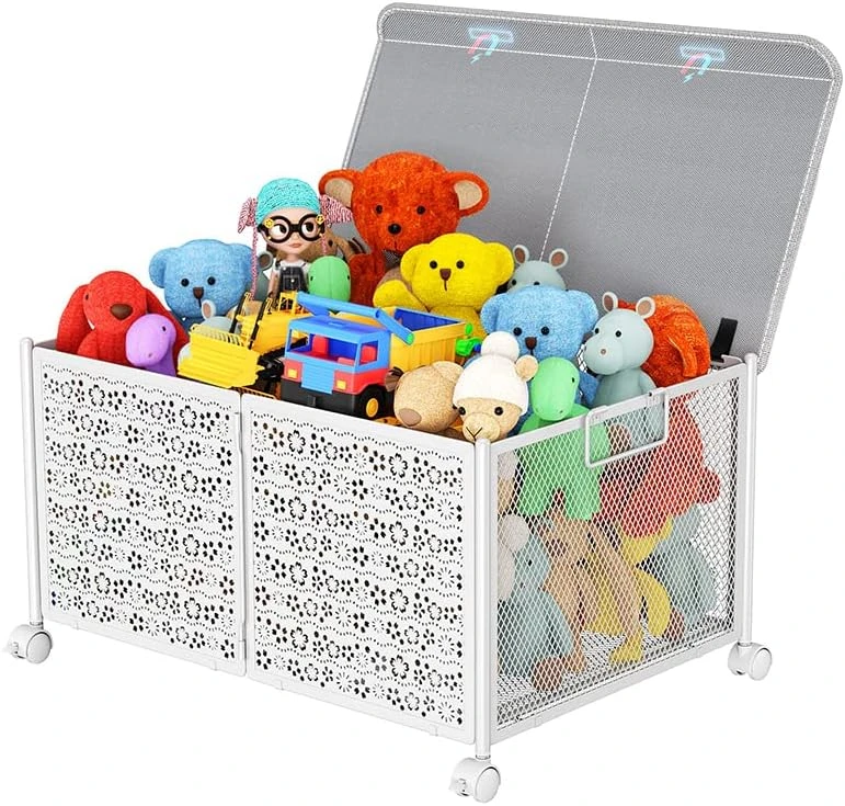 - Durable Metal Design: The toy box is made of high-quality metal, which can last longer than non-woven materials. The bottom can help withstand a weight of 40-50KG and fully prevent deformation of the four sides due to excessive use. It adopts a foldable design that can be folded into a flat shape when not in use and stored in drawers or closet corners.