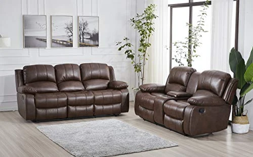 - Enjoy the ultimate comfort and relaxation: This sofa set provides great comfortable with bonded leather upholstery, pillow top backrest and armrests, and pocket coil spring seat cushion covered with premium foam