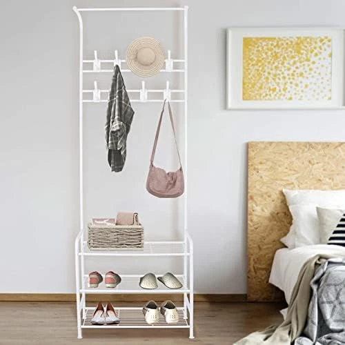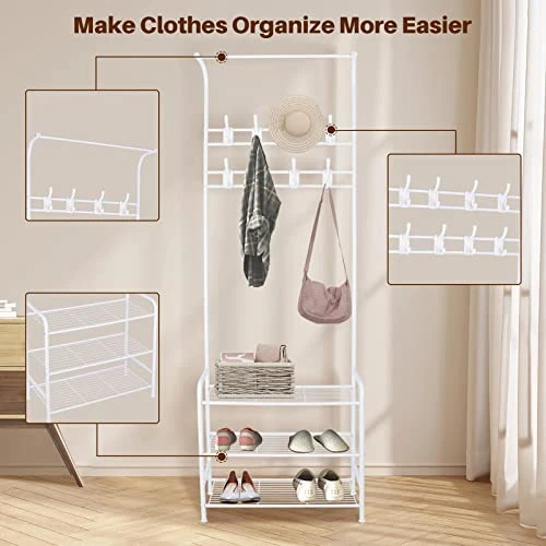 - STABLE & SAFE: With 4 adjustable feet, Shoe and coat rack for entryway gives your items stable support on carpets or uneven floors. The bottom non-slip pad can slip and protect your floor from scratches.