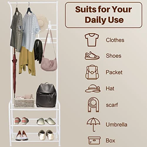 - Handy Hanging Rail: The sturdy and stable Hanging Rail maxes out the vertical space, allowing you to add coat hangers to hang up more clothes. You can use this coat rack hall tree as closet organizers and storage.