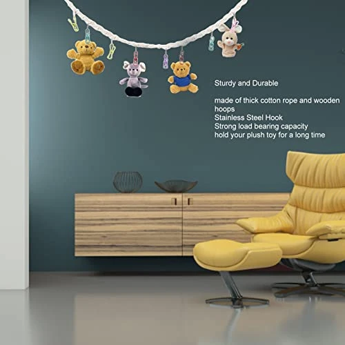 - Sturdy and Durable: The stuffed animal storage chain is made of thick cotton rope and wooden hoops, making it stronger and more durable than plastic.