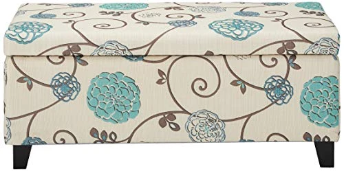 - Storage space: This ottoman comes with ample storage space for all of your pillows and blankets. This uses pressure hinges so that the lid will stay open on its own and will also ensure a soft close.