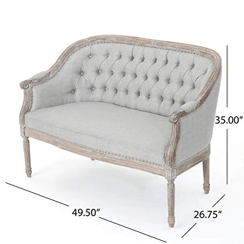 - This brilliant, Tufted Loveseat has it all – style, charm, comfort. Crafted from the highest Quality materials, It’s destined to become a part of the family. You’ll especially appreciate the careful detail work on the legs and armrests.