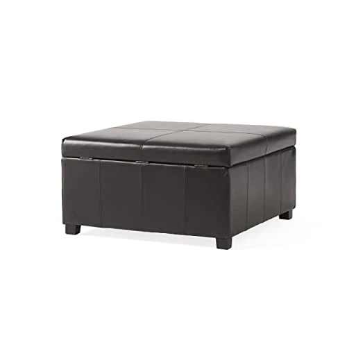 Christopher Knight Home Living Berkeley Brown Leather Square Storage Ottoman, Espresso
