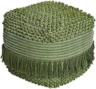 - HANDWOVEN BOHO DESIGN: Our handcrafted poufs are expertly designed and made using a centuries-old method. Any natural variations are not product flaws, but rather, will ensure that your purchase is of a truly one-of-a-kind product. With a tufted design with a tassel skirt, this lovely cube pouf is a perfect accessory for any modern home.