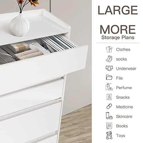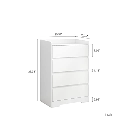 - 【Perfect For Your Home Decor】Simple and practical style,finished crisp white as tone,this 4 drawers dresser is suitable for bedroom, living room, guest room, closet, hallway, entryway, small apartment, and so on. This chest of drawers can be used as dressers for bedroom and also be used as a TV stand for living room. More use scenarios waiting for you to explore.