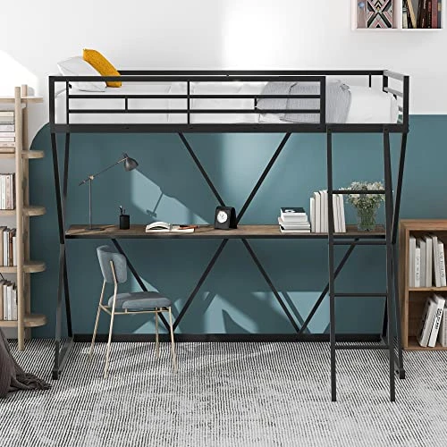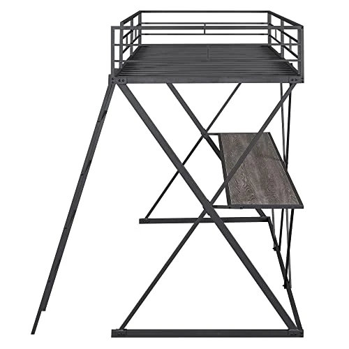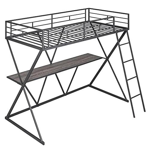 - 【X-shaped Structure】Triangle is the most stable structure. Our metal loft bed featuring three X-shaped brackets, this twin size loft bed with desk is particularly strong to bear a maximum weight of 220 lbs. The special X-shaped design loft bed can harmoniously match with a variety of styles of furniture because of the simple and fashion appearance.