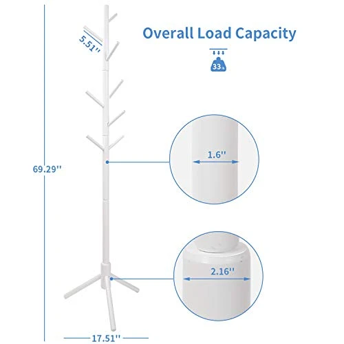 - 【SPACE SAVING】 – 8 Hooks on this tree coat rack stand will help you hold up to 11 lb each (max. total load: 33 lb) and won’t damage your clothes—it’s time to get rid of the coats covering chairs, bags scattered about the floor, hats disappearing to who knows where.