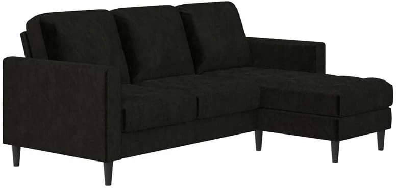 - Spacious L shaped couch with sturdy, solid wood legs with a contrasting black finish