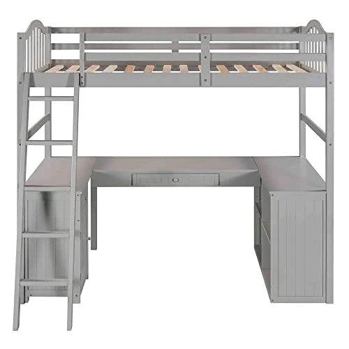 - [Solid Construction] This muti-functional loft bed is crafted from a solid pine wood frame, with commercial grade MDF board for quality control and durability. The stable ladder can’t be assembled on other side of the bed. Guardrails are solidly attached for added safety.