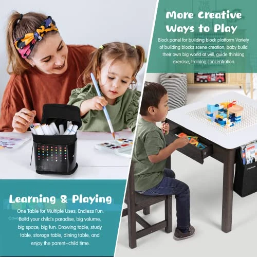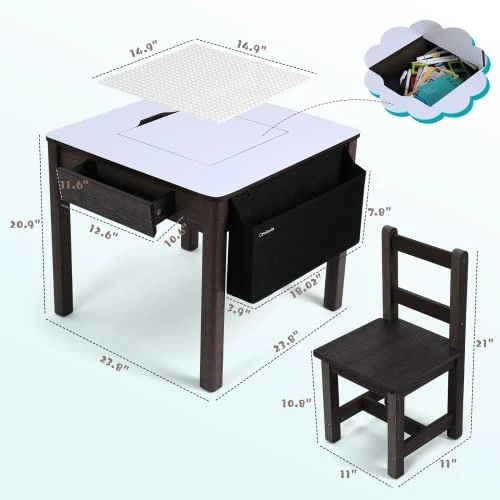 - GREAT STORAGE: The Cowiewie toddler table and chairs feature built-in storage at the tabletop, and two drawers provide multiple locations for children to keep their toys, books and blocks neatly organized. The side organizer pockets can store a variety of picture books and toys. This design promotes children’s independence, allowing them to learn to manage their belongings and develop good habits of keeping their play area neat and tidy. It stops your child’s things from being cluttered and messy.