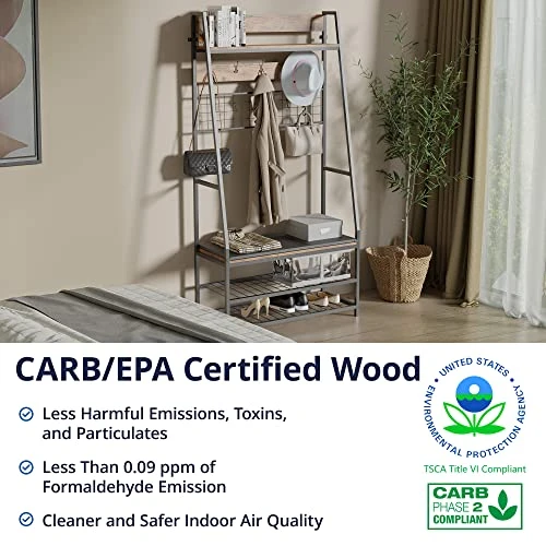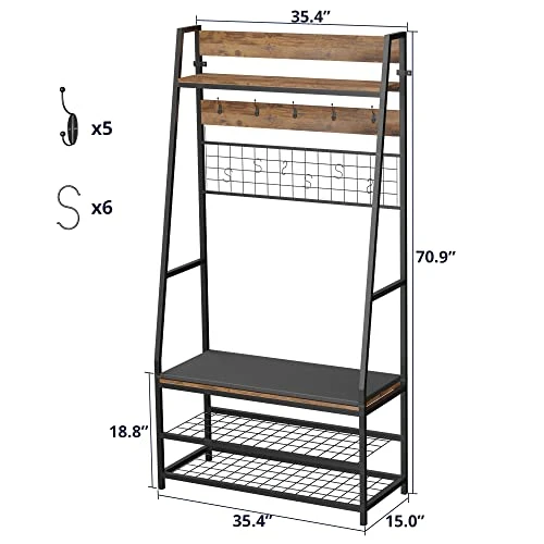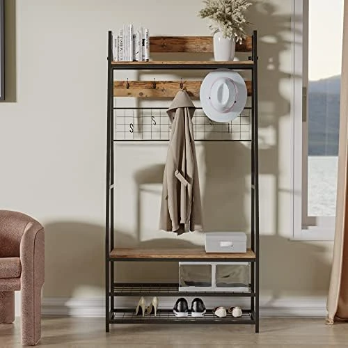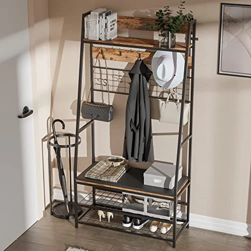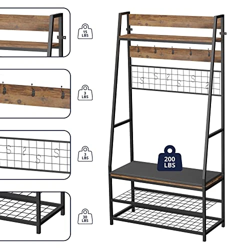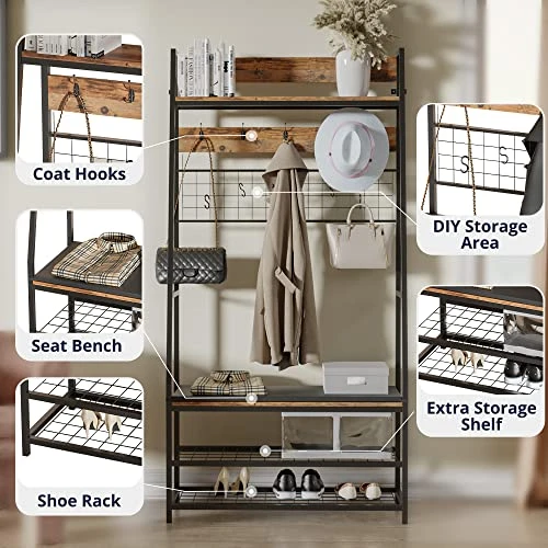 - 【Multipurpose Coat Rack】- In addition to being a hall tree on your entryway, it can also be used as a coat rack in the bedroom. It can also be placed in the bathroom, living room, or study. No matter what you decide to do, this clothes rack with shoe storage will meet all your requirements.