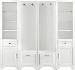 - Hinged drop-down cabinet door with magnetic closure on the bench allows for easy access
