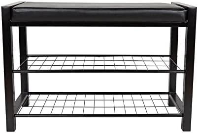 - Features a distinctively modern metal frame with two open shoe rack shelves for stylish and ample storage space