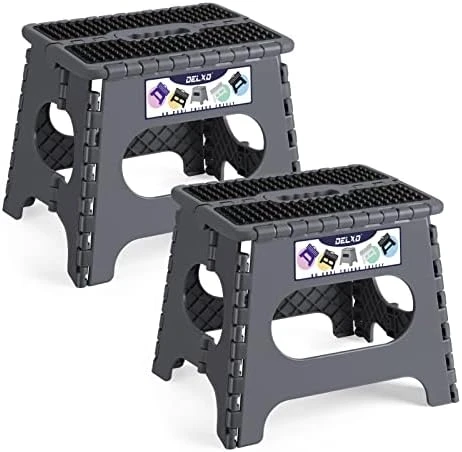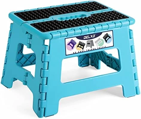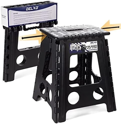 - 【Space Saving Foldable Stool 】Delxo step stool save your closet space more than 90% when it folded up.It’s quickly and easily folds away for convenient storage so you can opens with one flip of the hand.Also you can hides them in corner at home because it’s so compact.