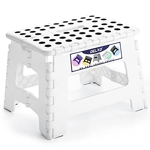 - 【Space Saving Foldable Stool 】Delxo step stool save your closet space more than 90% when it folded up.It’s quickly and easily folds away for convenient storage so you can opens with one flip of the hand.Also you can hides them in corner at home because it’s so compact.