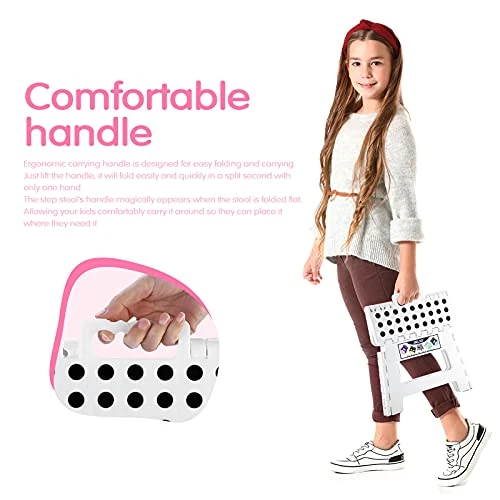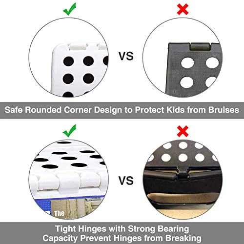 - 【Premium Quality 】The internal structural design 9 inch Folding Stool in Black is unique makes the step stool extra strong and safe. It can hold up to 300 lbs Max !!! Which is mainly used for kids indoor sitting. Please make sure the step stool is fully opened before use.