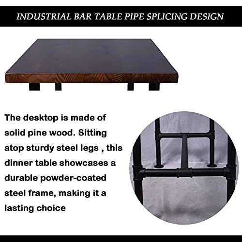 - SUPERIOR CONSTRUCTION – The desktop is made of solid pine wood. Sitting atop sturdy steel legs , this dinner table showcases a durable powder-coated steel frame, making it a lasting choice