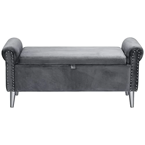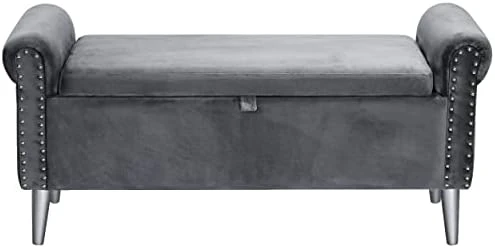 - Comfortable and Durable: The surface of the grey bedroom bench is made of velvet material, and the armrs and seat cushions are filled with sponge, which is soft and comfortable. And interior solid wood frame and 4 leg are sturdy and durable, this rolled arm bench can accommodate two adults at the same time, and the maximum bearing capacity is 550 pounds.