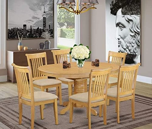 - Stunning Dinette set shows the natural charm of Asian hardwood finished into Oak Table and chairs, which brings up elegance and formality. This pedestal dining table is constructed from All Asian Hardwood from top to bottom. The dining table set is created of high-quality Asian wood.