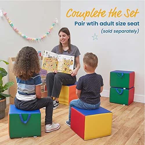 - LIGHTWEIGHT AND PORTABLE: Built-in handles make it easy for little hands to carry these lightweight cube seats; build seating benches, seating pods, or reading circles tailored to your space