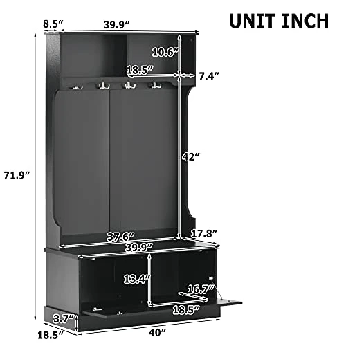 - [Assembly Required]: Mudroom bench with storage and hooks overall sizes: 40.7”L x 23.71”W x 72”H. Assembly required, this hall tree with bench comes with detailed manual and hardware to help you to put the item together.