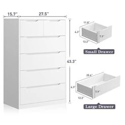 DEVAISE 7-Drawer Chest, Wood Storage Dresser Cabinet With Wheels, White