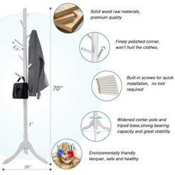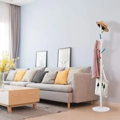 Vicllax Coat Rack Stand 8 Hooks Wood Clothes Rack Stand Hanger Free Standing Hall Tree (Colorful)