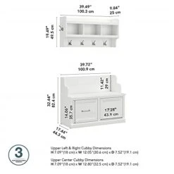Bush Furniture Woodland Entryway Bench With Doors And Wall Mounted Coat Rack, 40W, White Ash