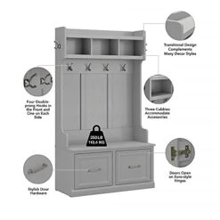 Bush Furniture Salinas Hall Tree With Storage Bench, Cape Cod Gray